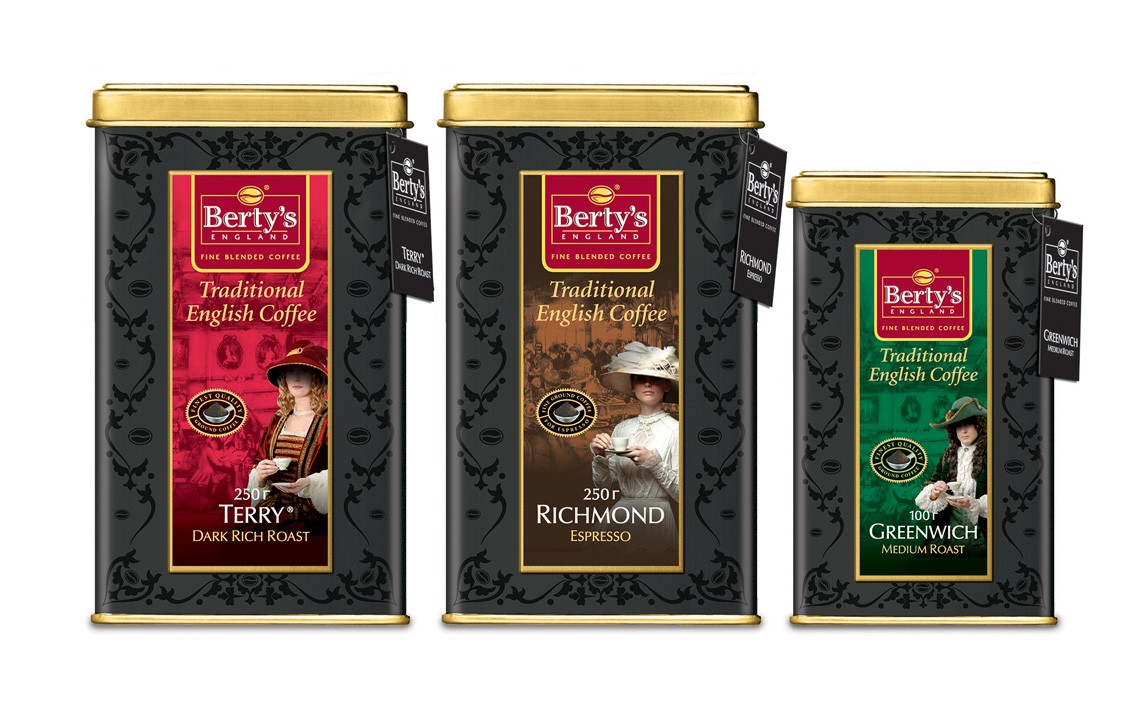 Create a new product brand logo and packaging for this Russian (Moscow) based coffee business. The creative needed to reflect the historical British tea and coffee culture and reflect the premium nature of the specially sourced raw coffee beans.