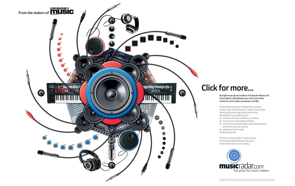 Award winning creative advertising campaign for Future Publishing. A series of illustrative press adverts promoting Music Radar.com. Representing different genres of music, with each illustration created by our own designers.